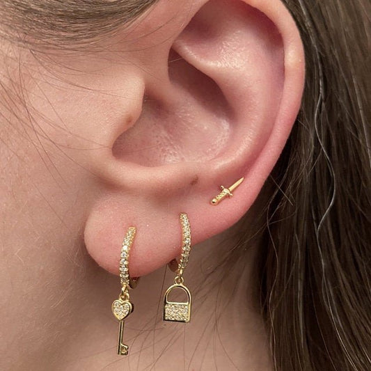 Sold outCZ Pave Heart Key Huggies