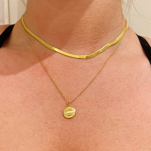 Sold outEvil Eye Pearl Charm Gold Necklace